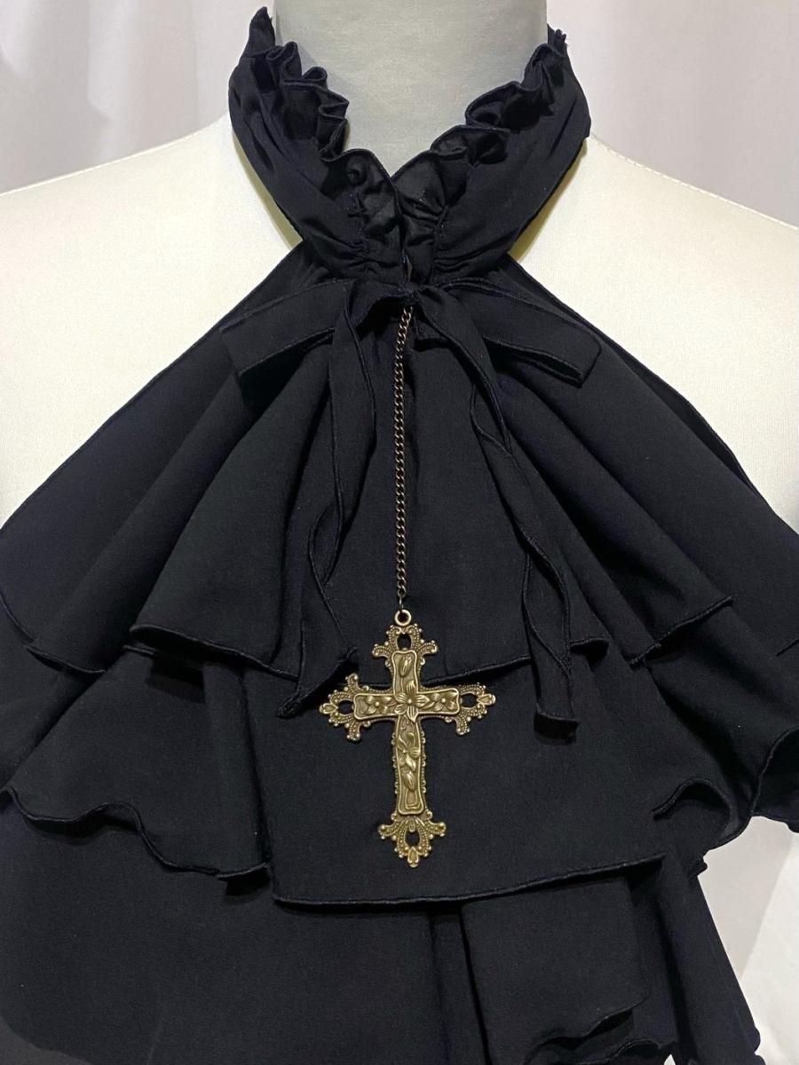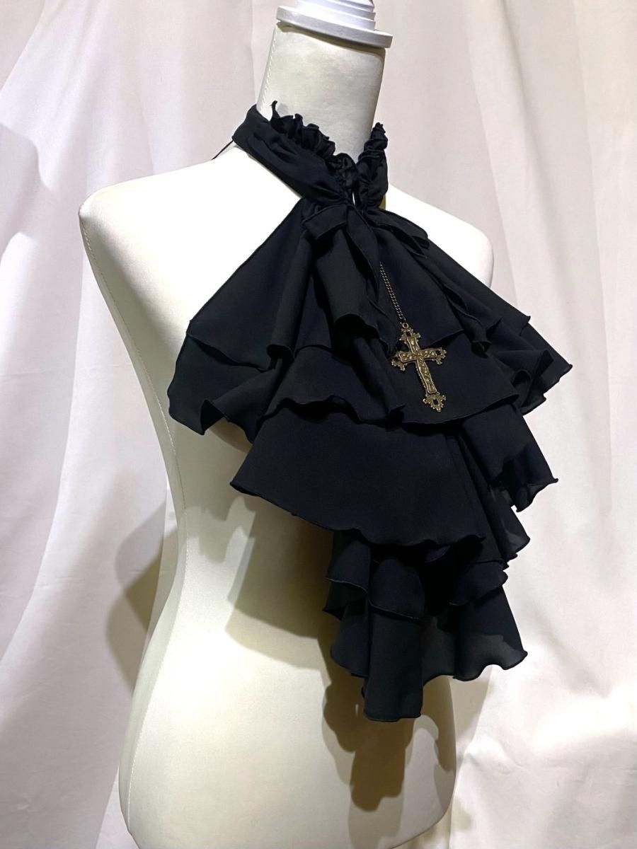 チェーン付きの十字架が揺れるシックで華やかなゴシックタイです。
