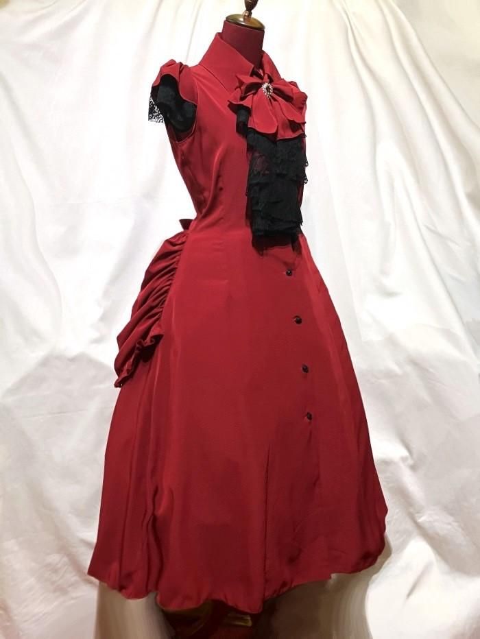 流麗ドレープタイ付きバッスルゴシックワンピース:赤×黒レース地