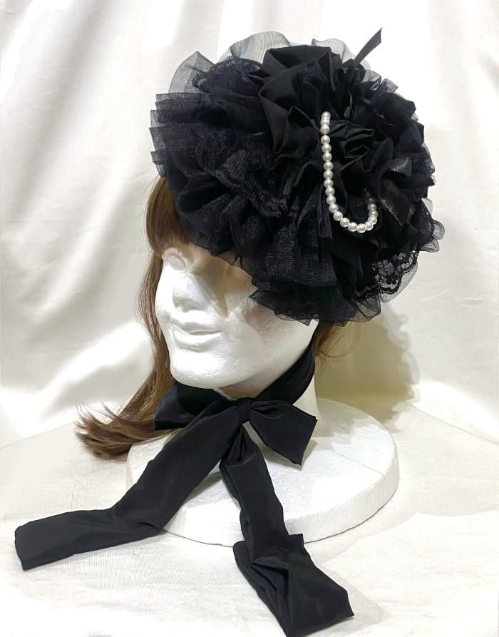 ★バラ・パール・リボン等の高貴なディティールで飾り付けた究極のロマンティックボンネットです。