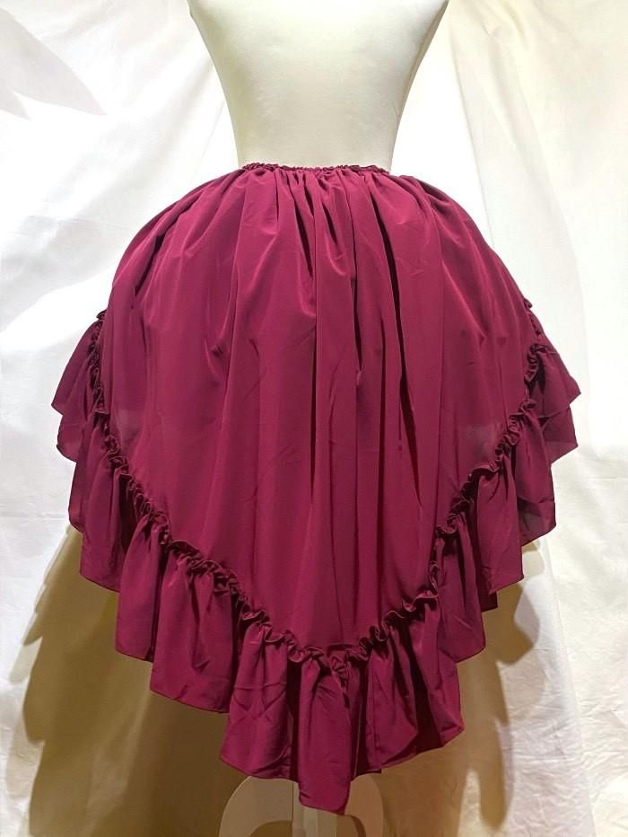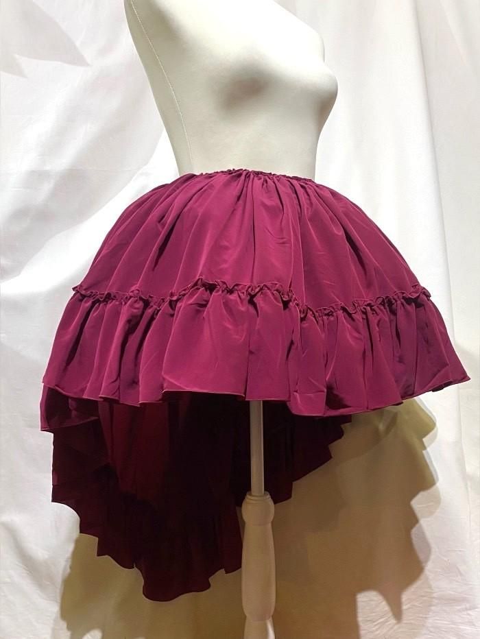 前短・後長V字フリル重ねレース付きスカート:ピンク×ピンクレース