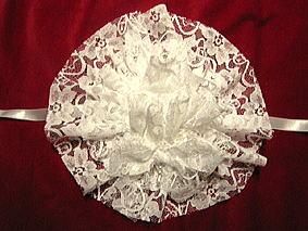 アクセサリー付きバラ風レースボンネット:白レース×白アクセサリー