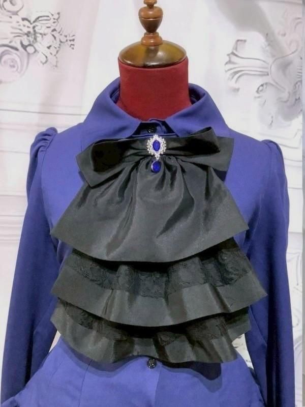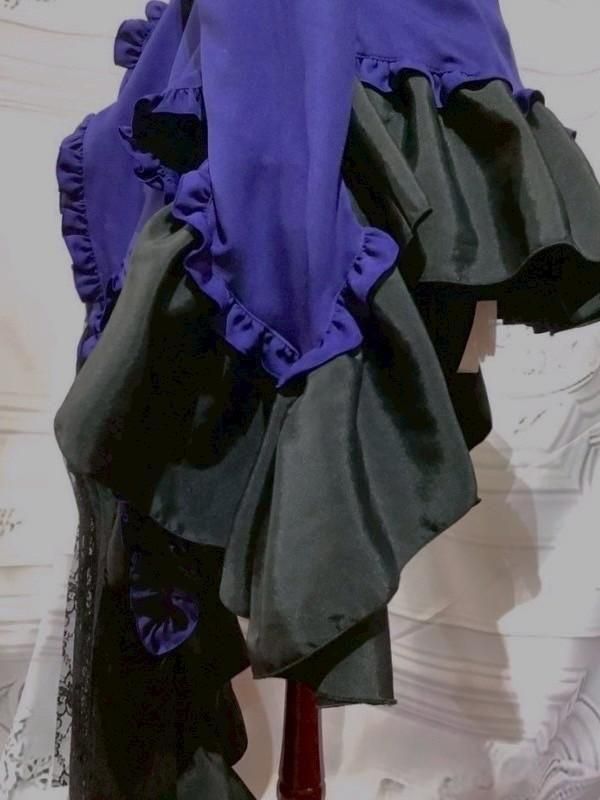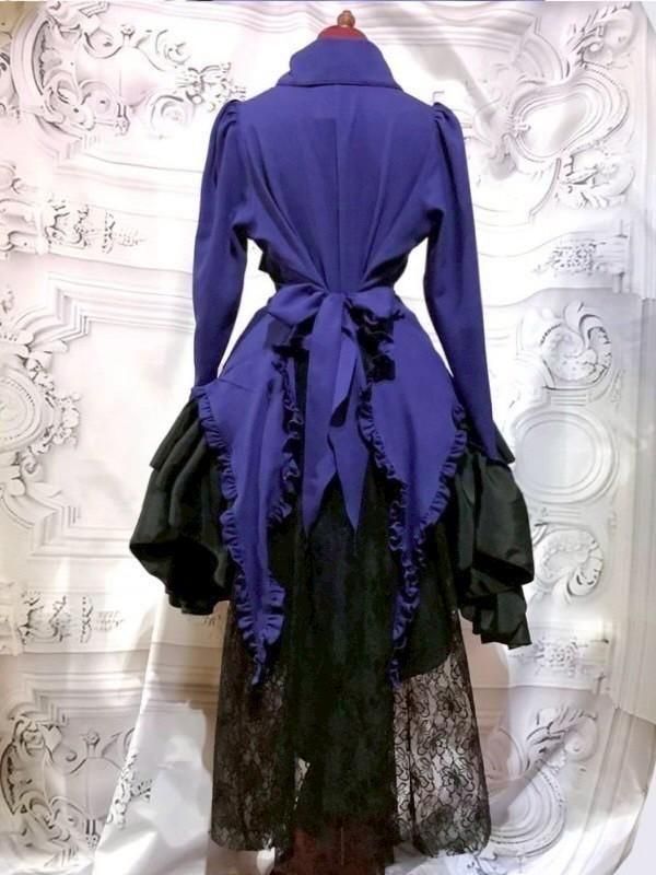 ◆受注商品◆パニエ入り後リボン付きフリルスカート:オフ白ゴシック柄×黒レース