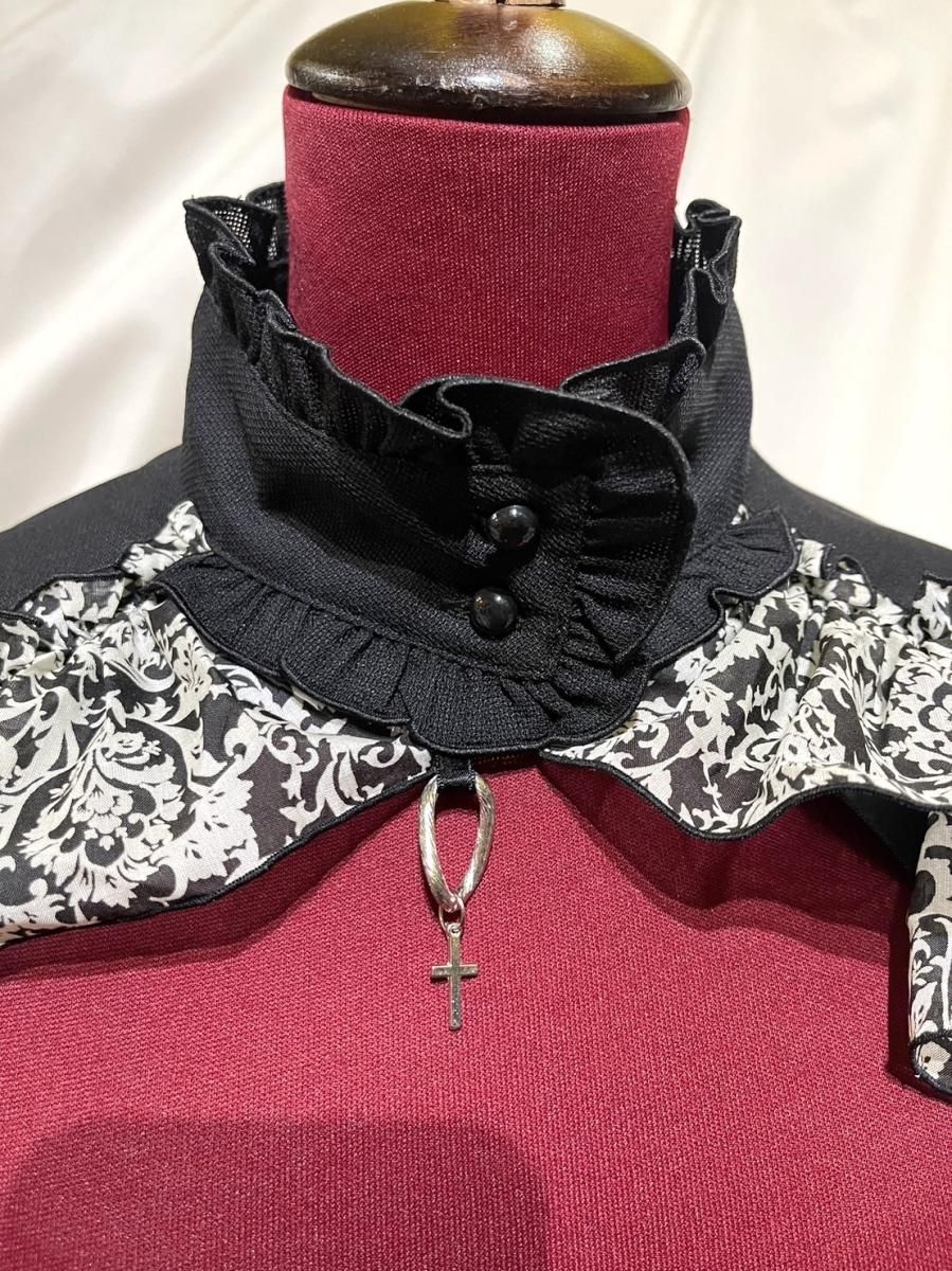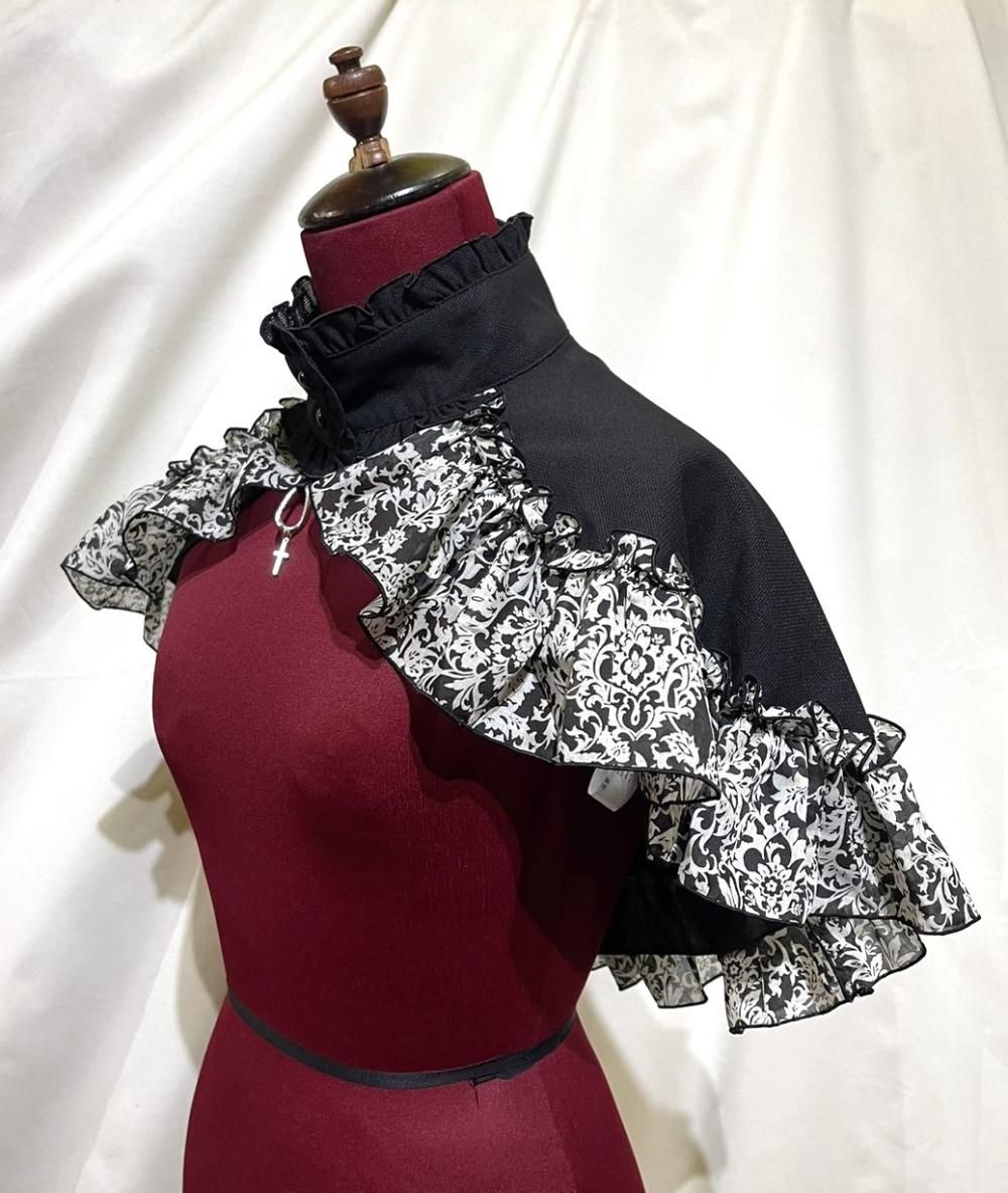 ◆受注商品◆コルセット付き異素材スパイラルロングフリルスカート:白×黒×黒レース