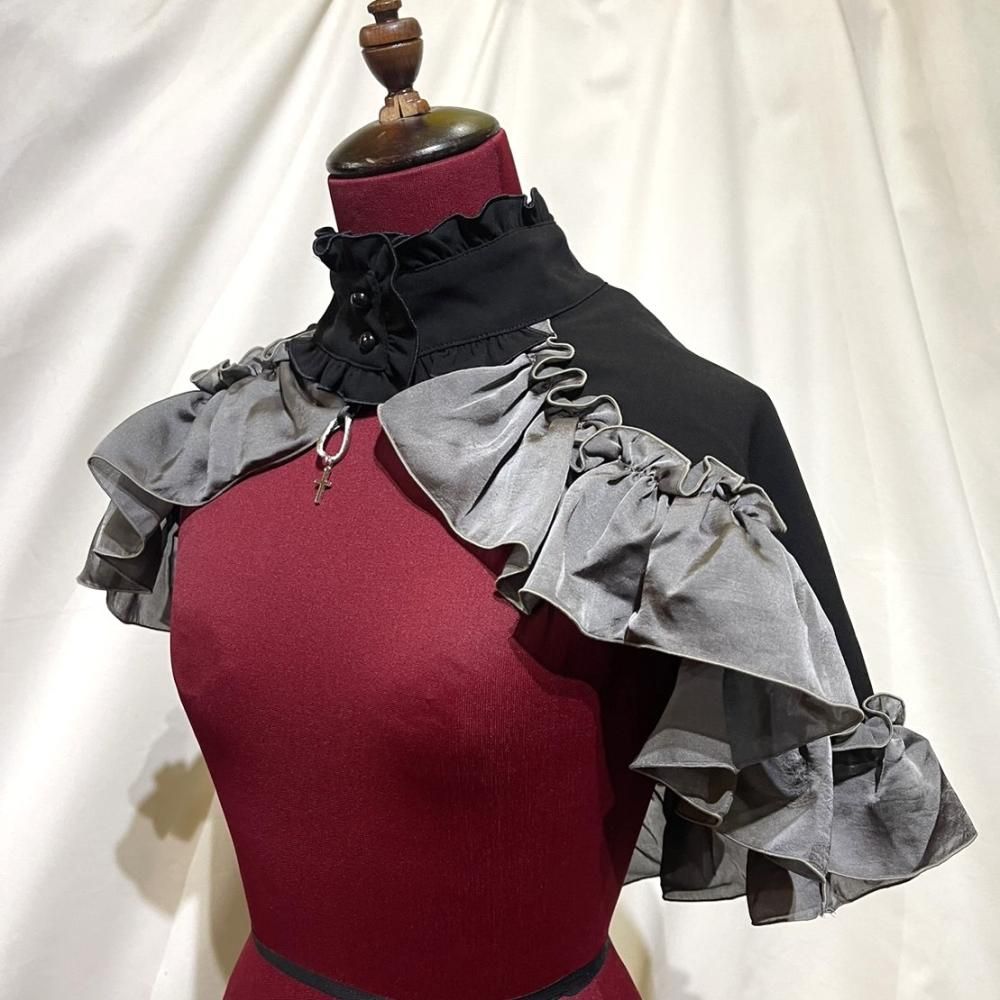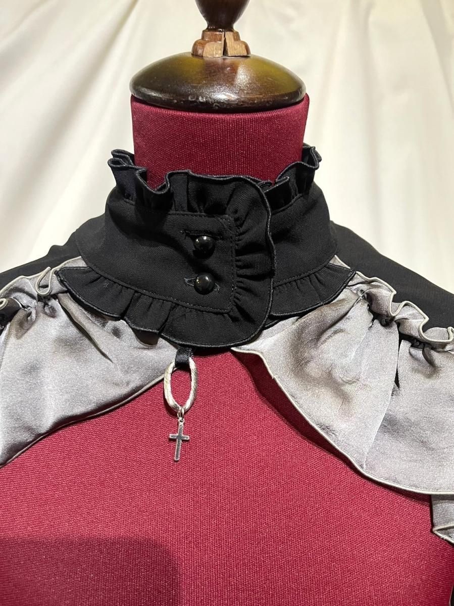 ★大きなゴシック調の豪華な十字架がついた立ち衿型のケープ。