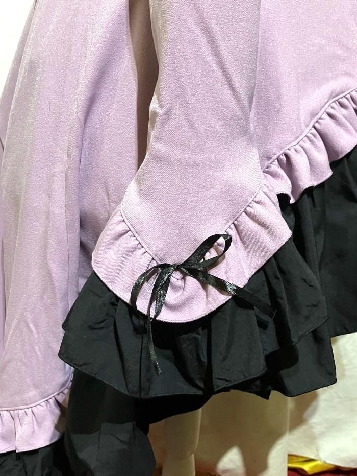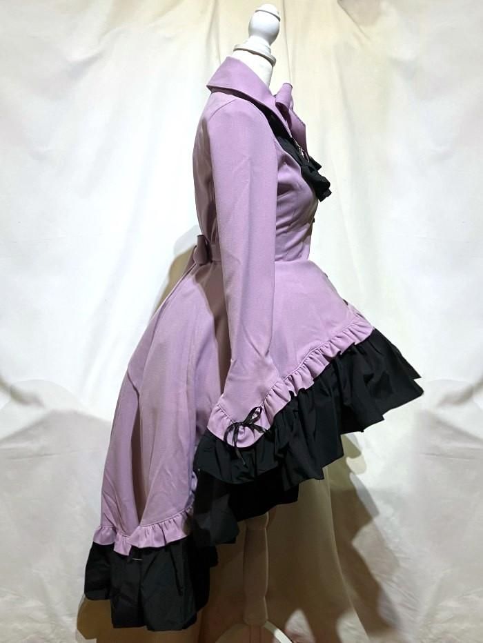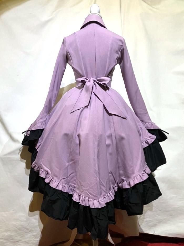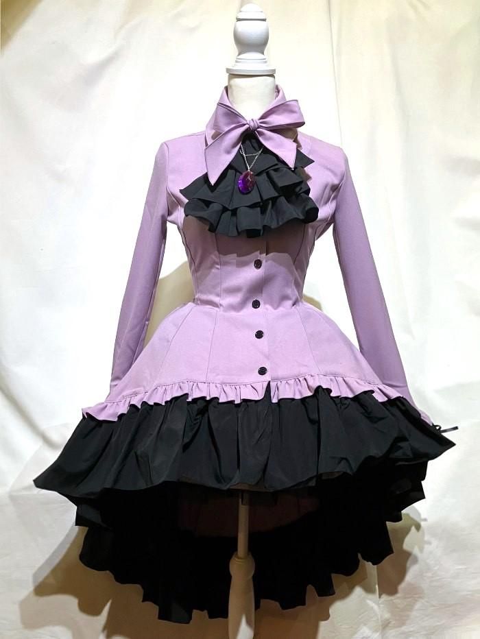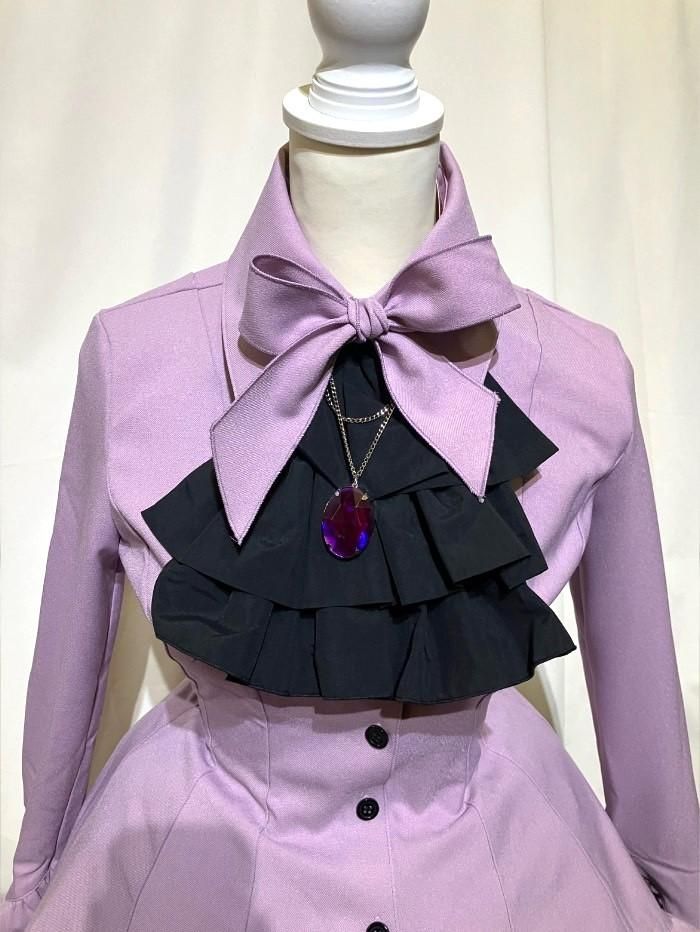 ゴシック調ダイヤカットタイ付きブラウス型ワンピース:ラベンダー×紫石