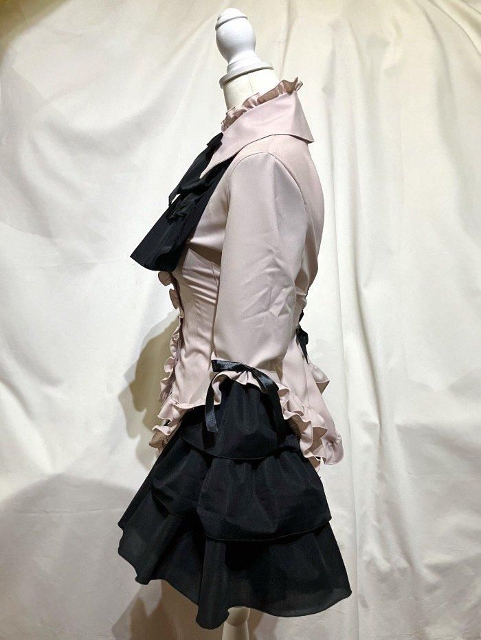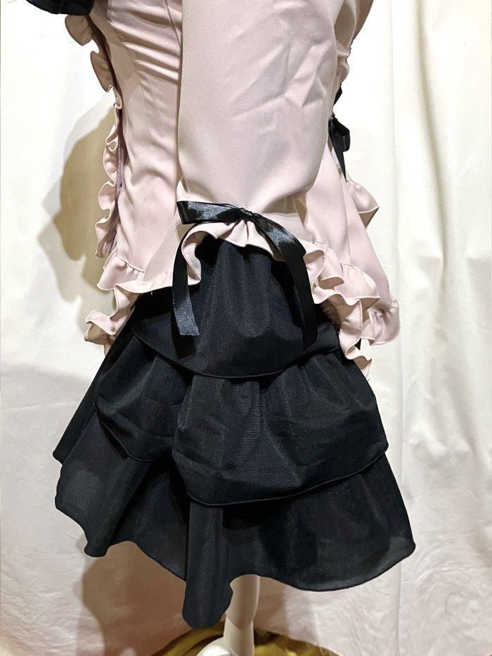 ◆受注商品◆パニエ入り後リボン付きフリルスカート:オフ白ゴシック柄×黒レース