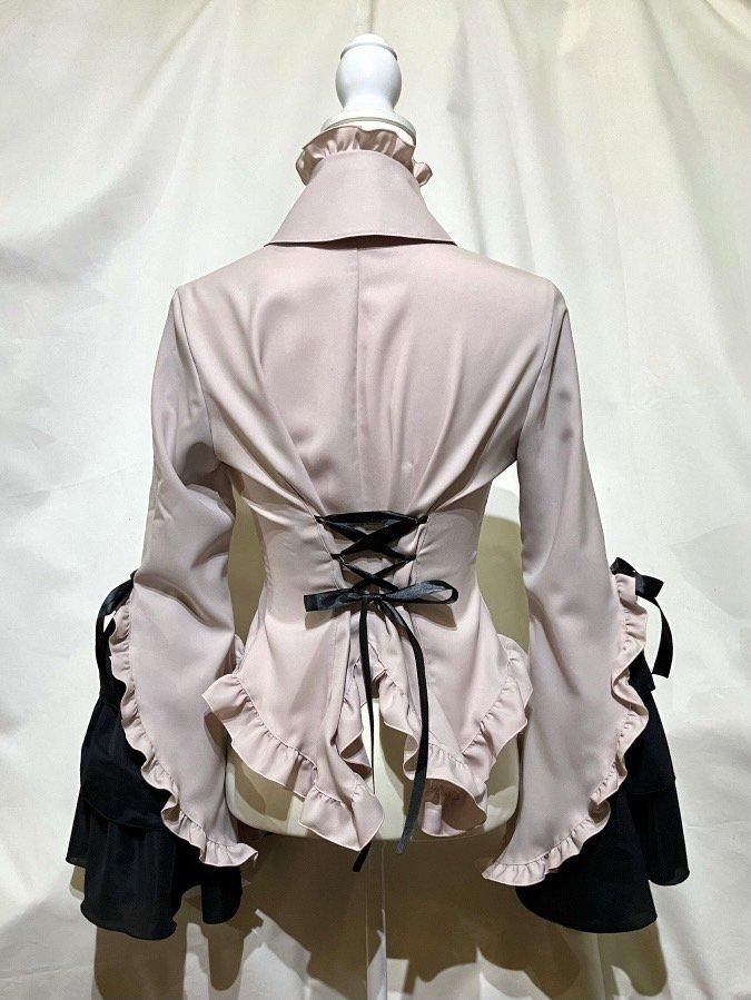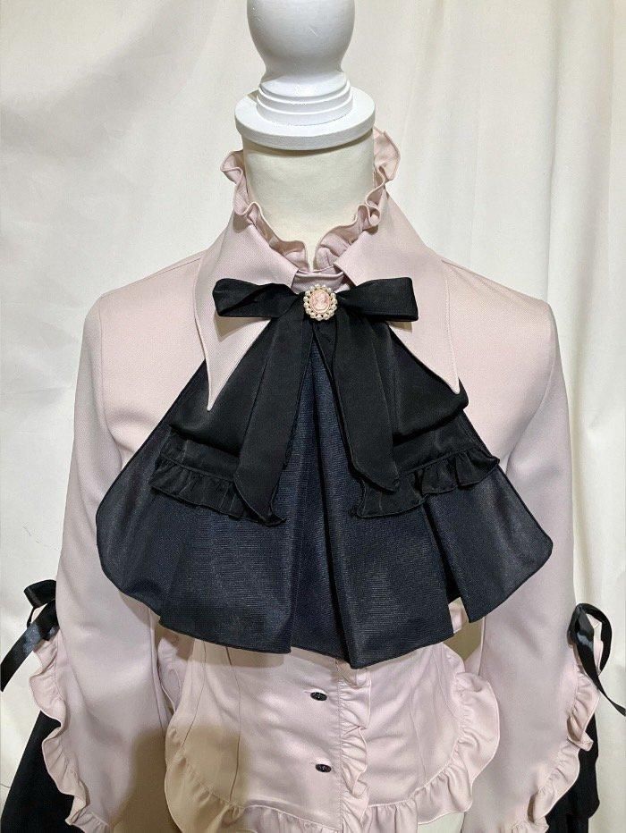 別タイ付きクラシカルデコレーションブラウス:黒×黒ストライプ×白レース