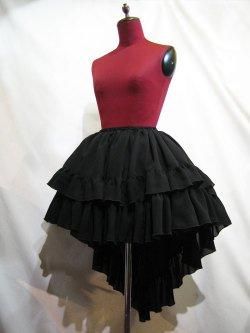 独創的なゴシック調のボリュームタイが豪華なワンピース型のブラウスと、前が短く、後ろが長いゴシックフェミニン調のロングスカートのセット商品です。