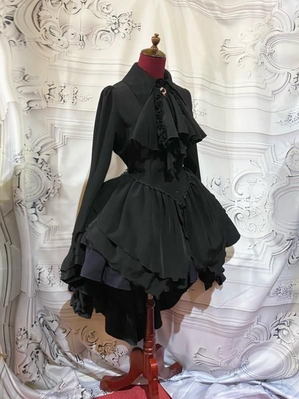 ◆受注商品◆ロマンティックタイ付き総フリルガーリーワンピース:白×黒