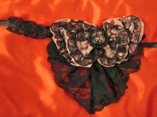 ◆受注商品◆パールバックルドレッシーヘッドドレス:ピンクサテン×黒レース