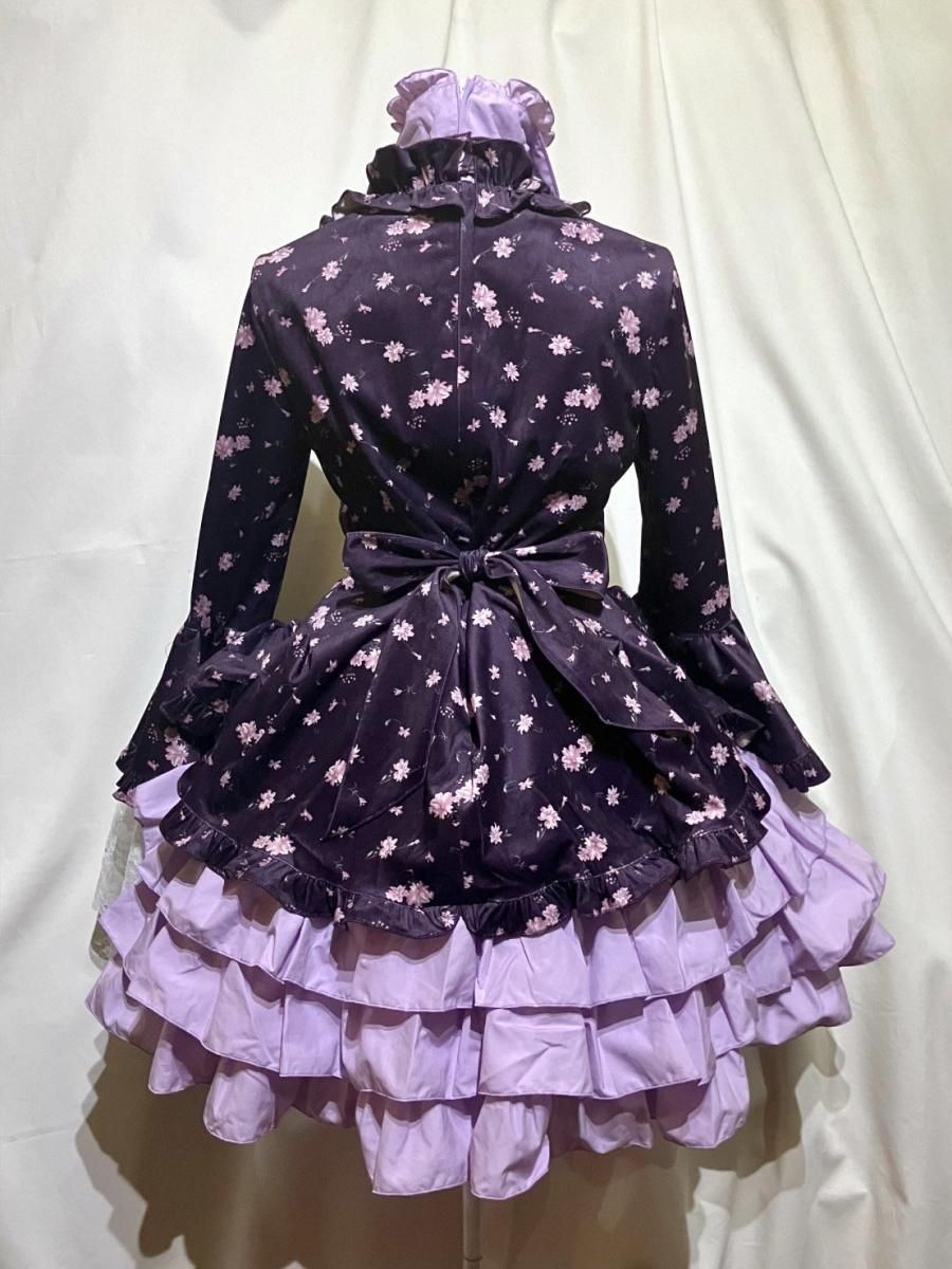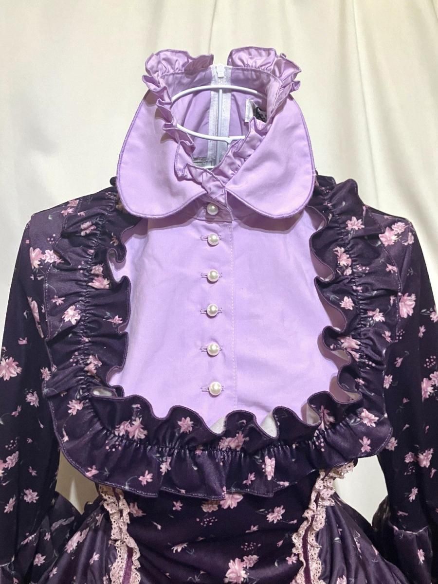 ◆受注商品◆ゴシック調十字架タイ付きギャザースリーブブラウス:紫