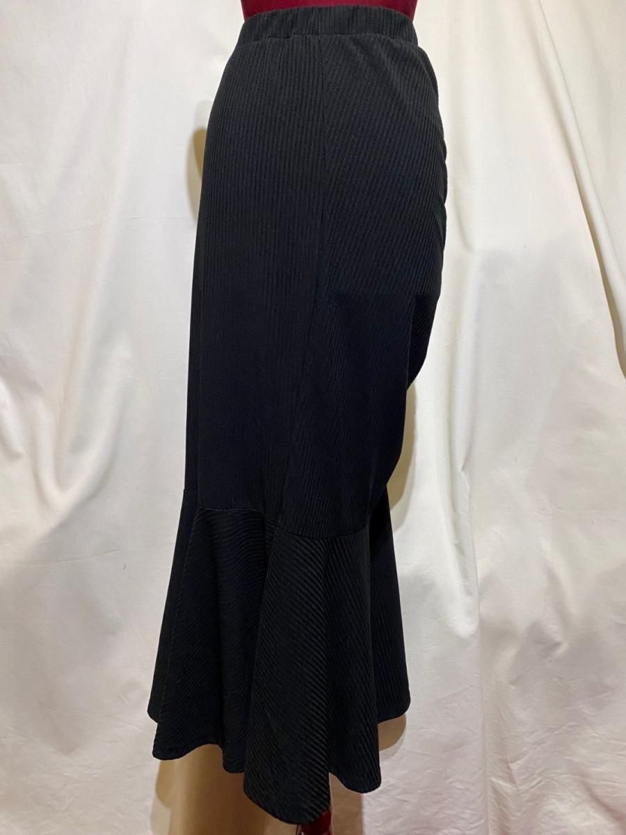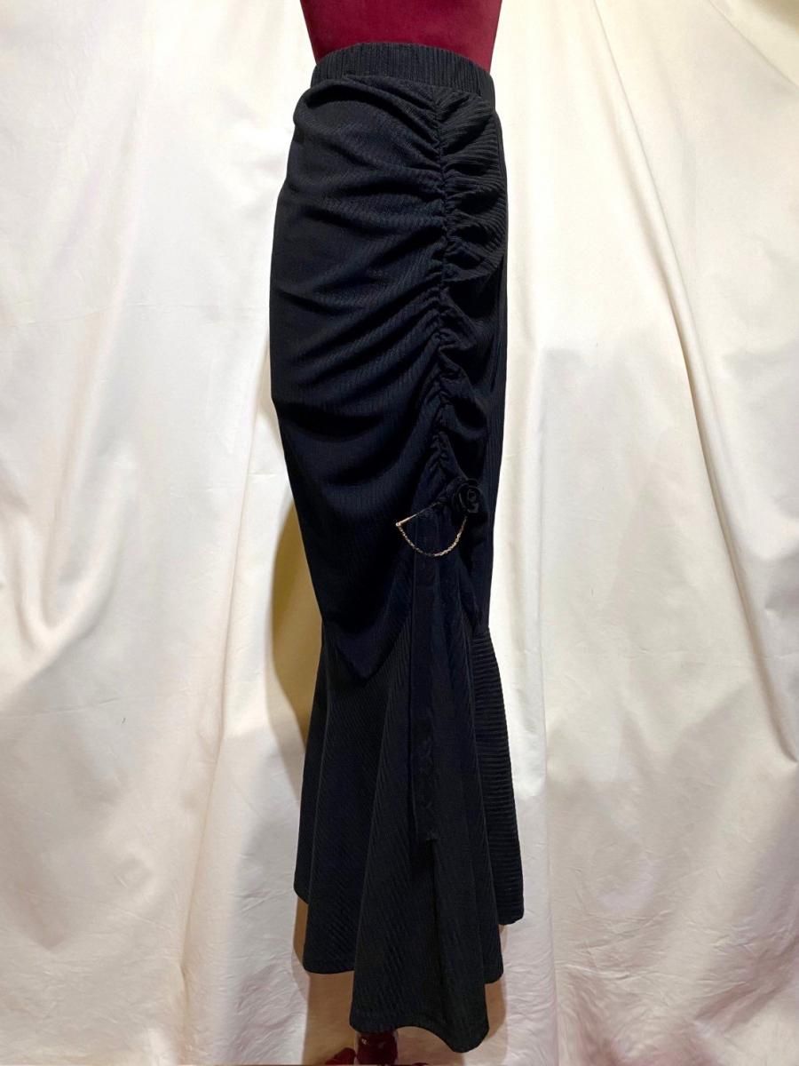 ◆受注商品◆エンブレム飾りチェーン付きハイウエストドレープスカート:黒