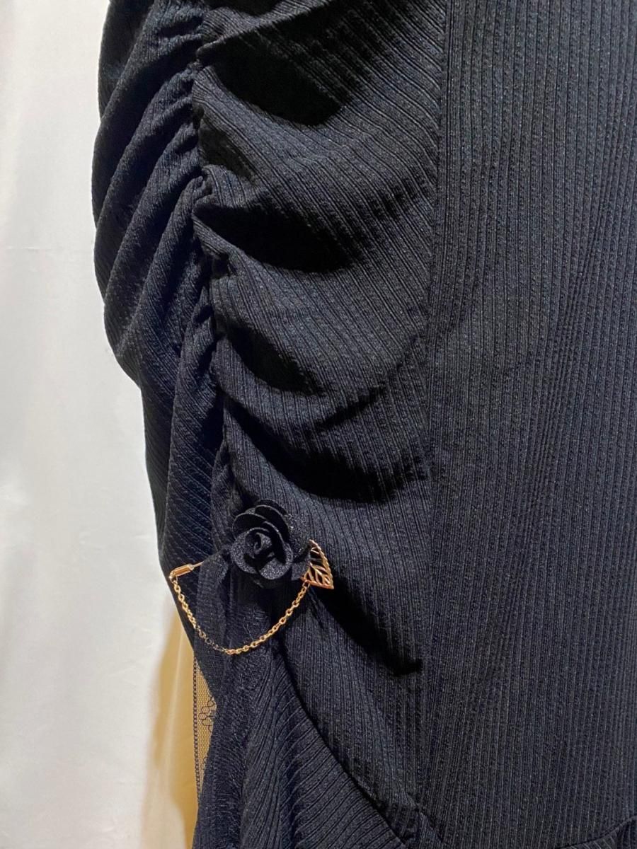 ◆受注商品◆別衿・姫袖付きドレスワンピース:黒×黒フリル