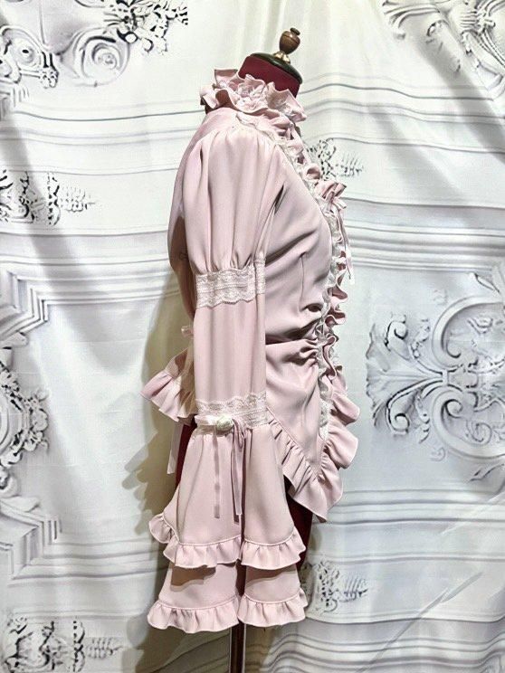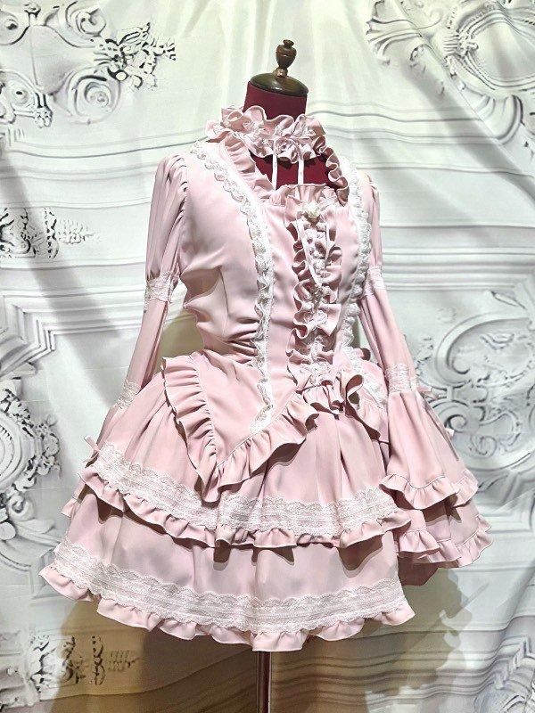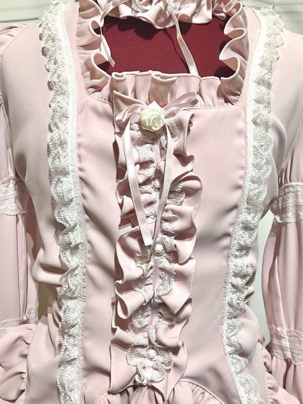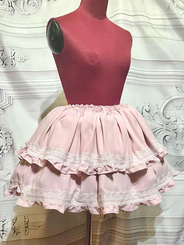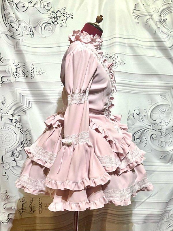 ★愛らしいパフスリーブの姫袖と、パニエが縫い込まれたたっぷり膨らむ、レース飾りが愛らしいティアードスカートがセットになったお得なコーディネート商品です。