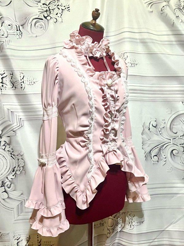 ★チョーカーが一体となっているデザインの華やかな姫袖ブラウス。