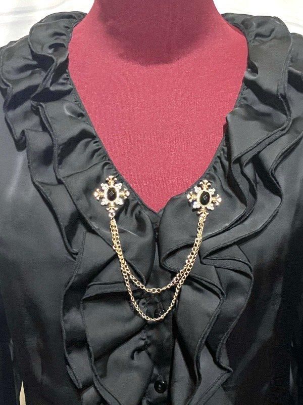 ◆M〜Lサイズ◆ゴシック調チェーンブローチ付きダブルフリルブラウス
