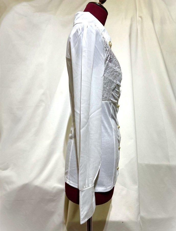 2wayドレープタイ付きブラウス:白×ゴールド白パールチェーン