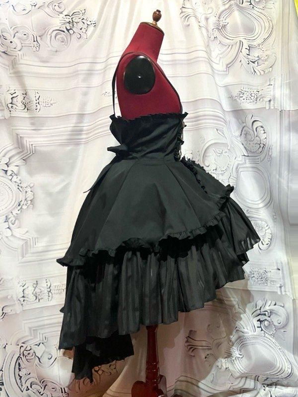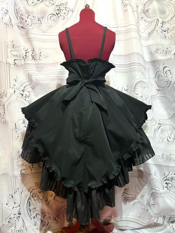 パール付きロマンティックボンネット:黒×ボルドーバラ×黒フリル×黒レース×黒パール