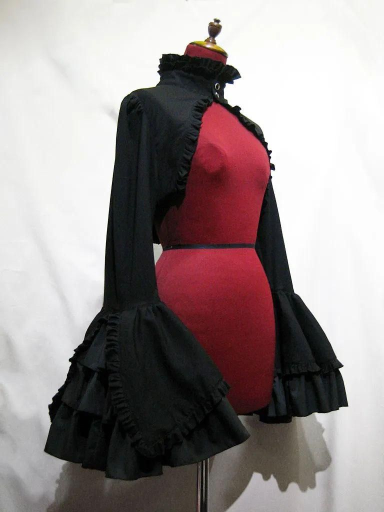 ボリュームたっぷりの豪華な姫袖が華やかなスタンドカラーのジャケット調ボレロです。