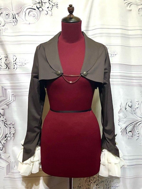 ★パフ型になった豪華な袖とバッスルリボンがデコラティブなロングジャケット。