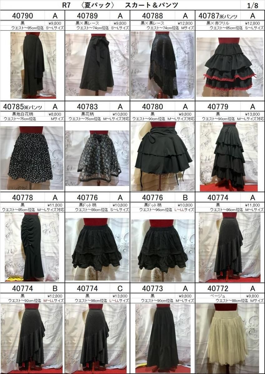 ※ケープ&スカートはフリー S〜Lサイズ。その他M(一部Lサイズあり)