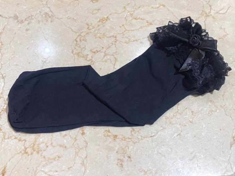 バラ付きひざ下丈ハイソックス:黒×黒レース