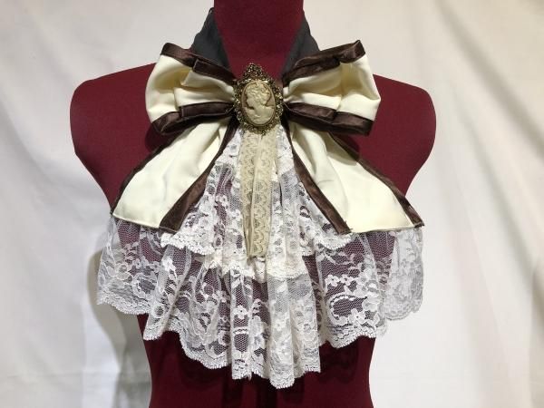 ゴシック調エレガンスタイ付きジャケット型ドレープワンピース:白グレーベージュストライプ