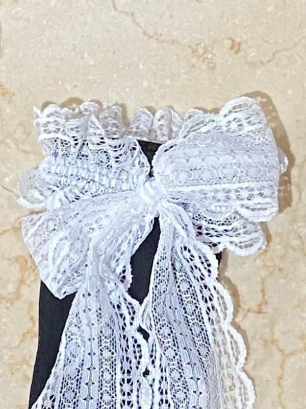 ひざ下丈ストッキング地スカラップレースソックス:黒×白レース