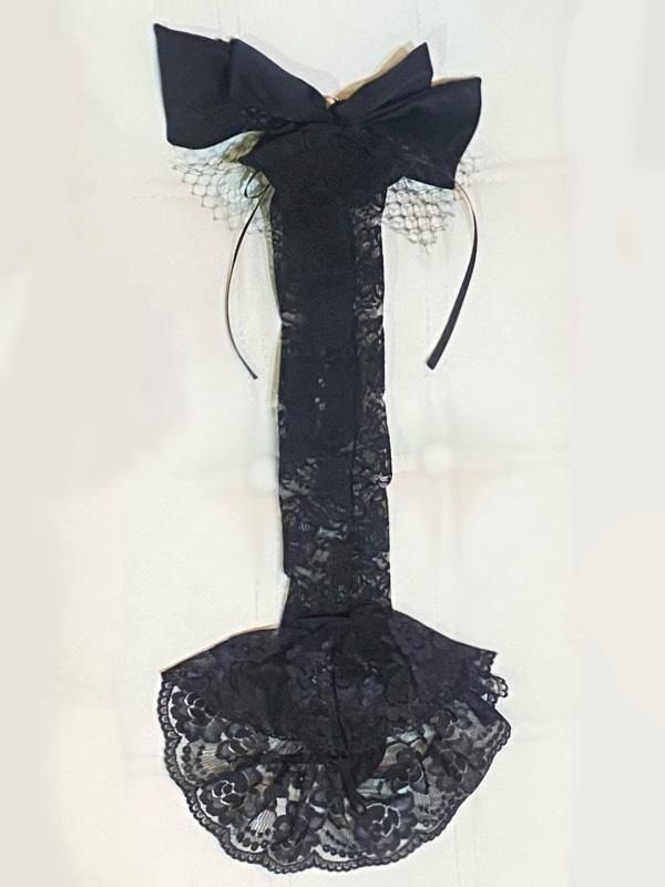 ◆受注商品◆ボリュームフリル&レースヘッドドレス:黒
