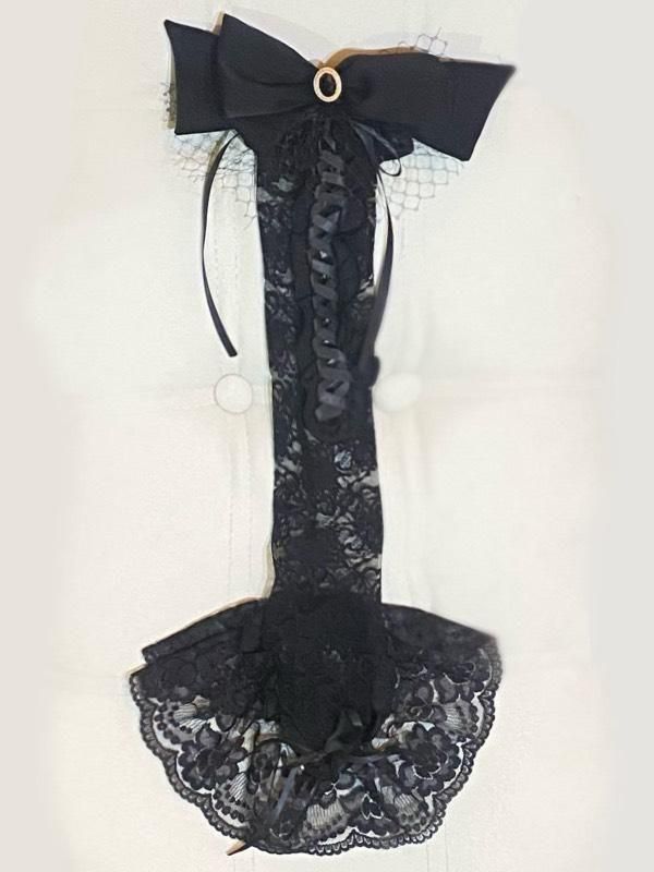 ◆受注商品◆ボリュームフリル&レースヘッドドレス:黒