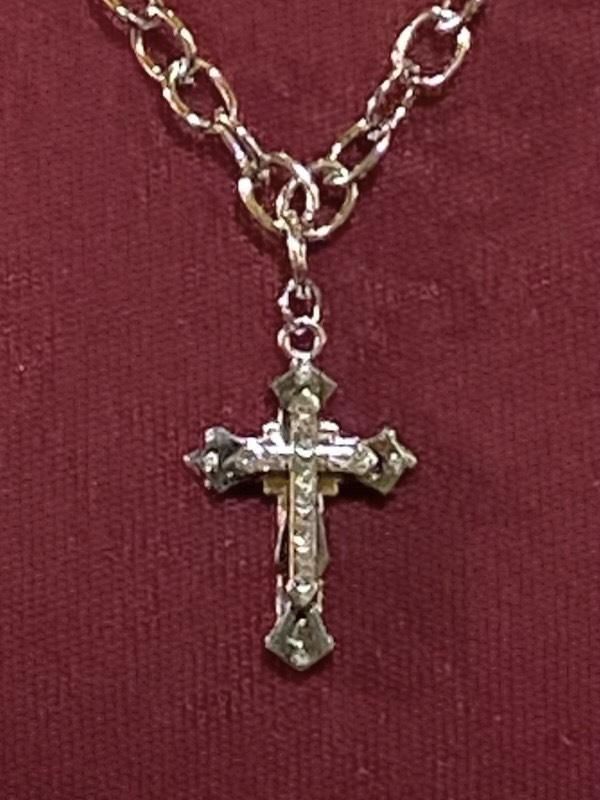ラインストーンが輝く十字架が2つ重ねられたデザインのネックレスです。