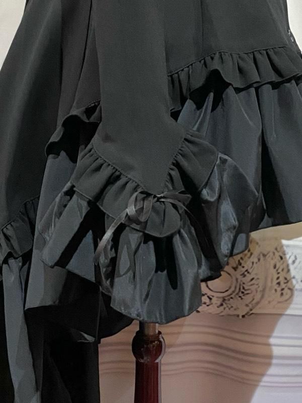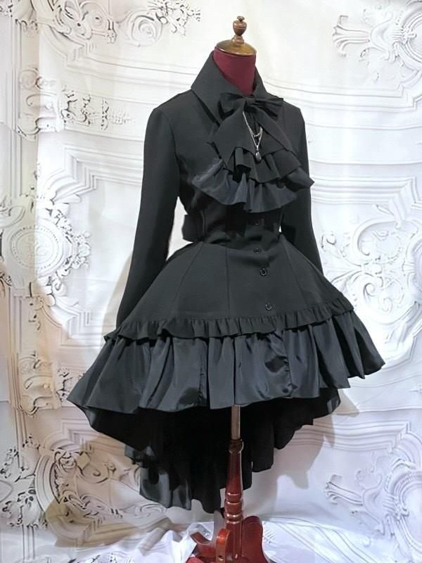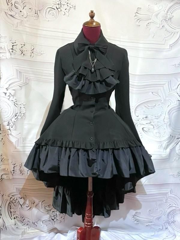 取り外し可能なボリュームたっぷりの華やかなタイがついた、流れるようなカーブラインが美しいゴシック調のエレガンスワンピース。