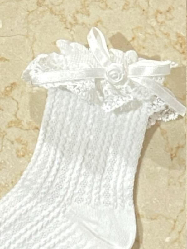 ★サテンの巻きバラがついた華やかでキュートなショートソックスです。