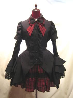 レース付きエレガンスゴシック調 ロングフリルスカート:黒×ボルドー