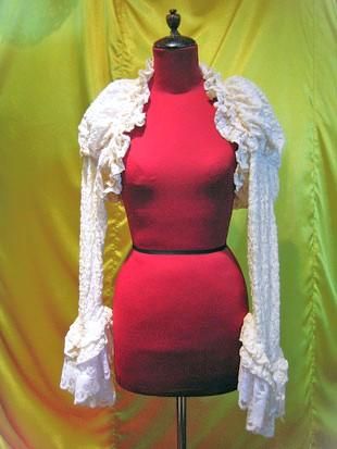 ◆受注商品◆アクセサリー付きギャザーパフボレロ:オフ白レース柄×白レース