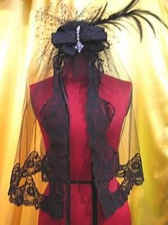 カメオヘアピン付きウェディングベール小帽子:黒×黒ドットフロッキー×黒レース