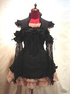 ドレープタイ付きゴシックエレガンスブラウスワンピース:黒×えんじ