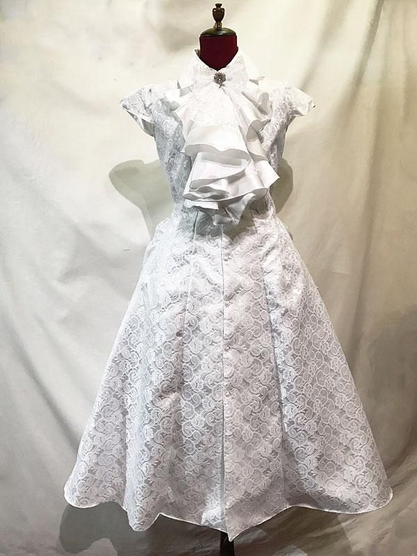 ◆受注商品◆ゴシック調エレガンスタイ付きジャケット型ドレープワンピース:白×黒
