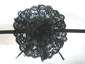 ◆受注商品◆ゴシック調デコレーションバラボンネット:黒×黒レース